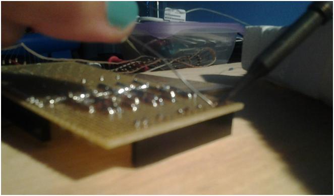 Una vez que hemos conseguido todos los elementos, los dispondremos en la placa perforada tal como se encuentran en el esquema para soldarlos. Os recomiendo que antes de soldar comprobéis los LEDs (ver la guía sobre encender un LED en este Blog), y midáis las resistencias.
