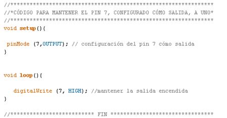 El código necesario para cargar en nuestra placa Arduino y trabajas con el puerto 7 (valdría cualquier otro) es el que os añado a continuación: