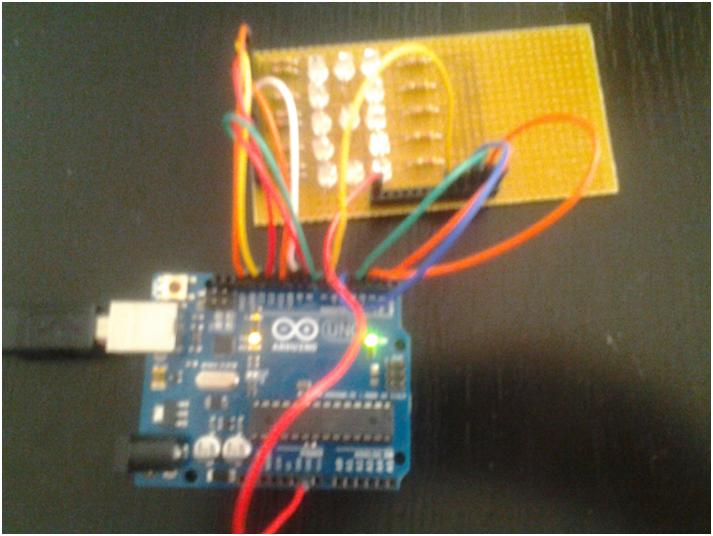 Para comprobarlo conectaremos cada una de las salidas de nuestra placa a una de las Entradas – Salidas digitales de Arduino. No olvidaros conectar la salida Vcc a la entrada Vcc de Arduino, puesto que si no lo hacemos nuestro circuito quedaría abierto y por tanto no se encendería.